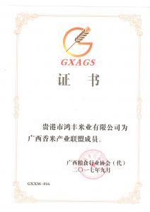 • 廣西 香米聯盟證書